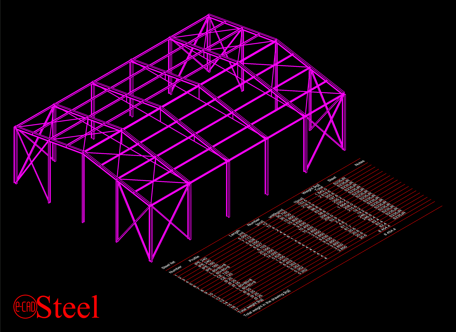 The e-CAD Steel add-on provides flexible drawings of many standard steel elements in the following view options: 2D cross-sectional profiles, 2D views (top, bottom, left, or right) and fully three-dimensional models. In addition, different summaries (lists) can be generated for engineering drawing tables and CSV®-format text files based on automatically inserted descriptions.